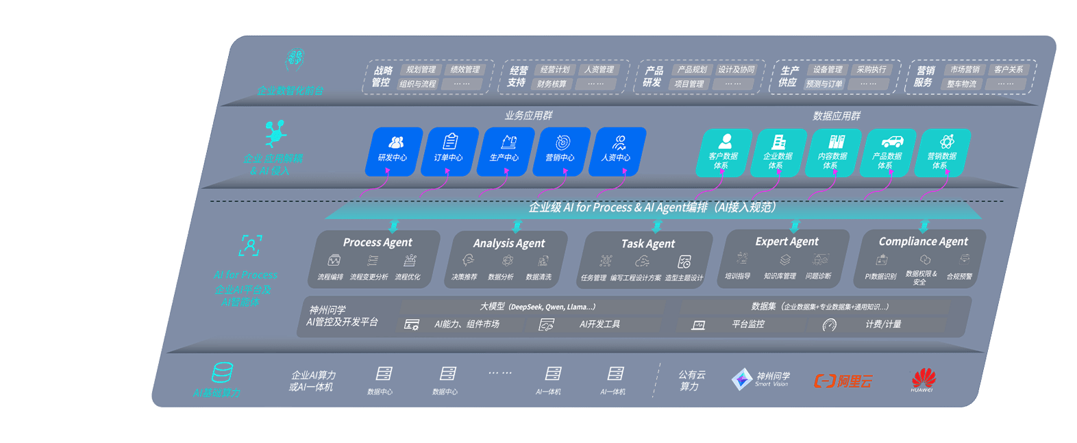 星耀国际问学智车解决方案是一套基于AI技术的汽车行业智能化系统,,,覆盖从底层算力到顶层AI应用的全栈方案。。。方案由算力层、、、模型层和应用层组成:算力层,,,,方案支持多种一体机配置,,具备云端灵活部署、、多云适配以及动态优化计算资源的能力;模型层,,星耀国际问学平台版提供了企业级AI应用一站式构建与管理平台,,支持基于后训练强化技术的汽车企业专属模型的训练、、、、评测和运营;应用层,,,星耀国际问学DeepSeek版提供包括超级员工、、、智能招采、、、、智能营销、、、、智能客服、、、、AI for BI等一系列解决方案,,,,可助力汽车行业实现数字化转型,,,让管理更智能、、、响应更敏捷。。。